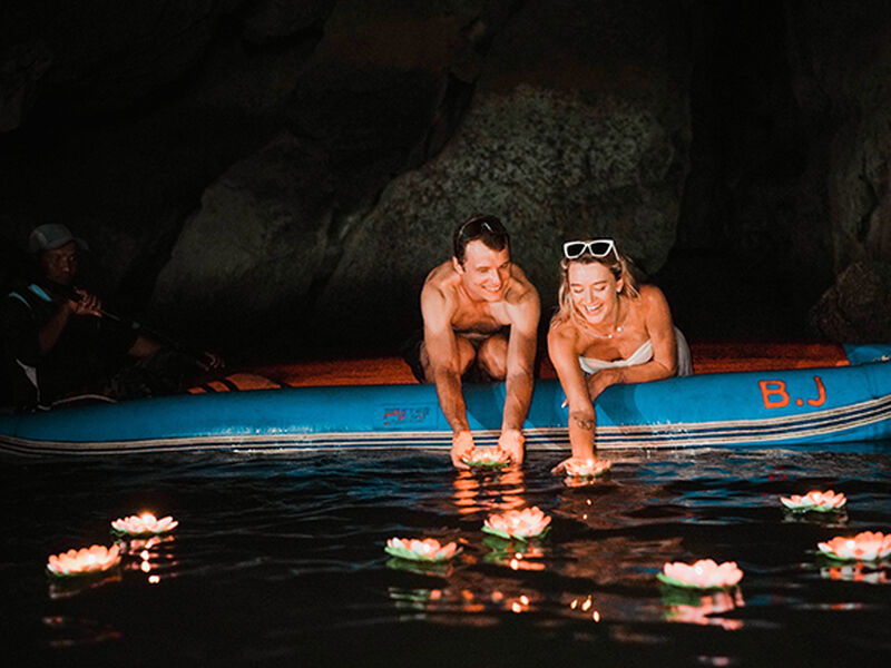 Kültürel Huzur ve Romantizm: Hong Adası'nın dinlendirici bir mağara lagününde, geleneksel bir su feneri duası ile unutulmaz bir kültürel ana tanıklık edin.