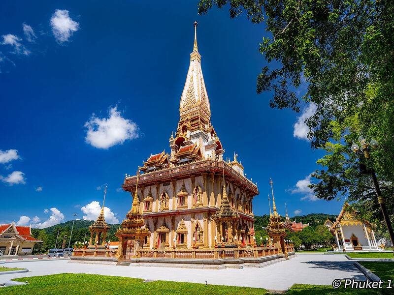 Wat Chalong, Phuket'in en büyük ve en önemli tapınağıdır, 19. yüzyılın başlarında inşa edilmiştir. Tapınak, 1876'daki bir isyan sırasında halka yardım eden rahip Luang Pho Cham ve Luang Pho Chuang'a adanmıştır. Tapınağın en önemli yeri, içinde Buda'nın kemiğinin bir parçasını barındıran Büyük Pagoda'dır (Chedi) ve duvarları Buda'nın hayatını anlatan resimlerle süslenmiştir. Ziyaretçilerin omuzları ve dizleri kapalı olmalı ve tapınak içindeyken ayakkabılarını çıkarmaları gerekir.