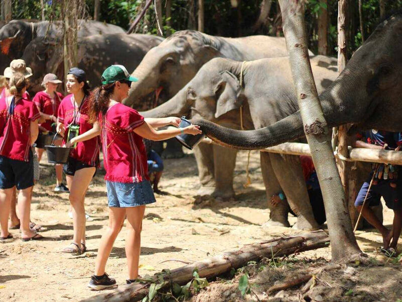 Suda oynamayı seven fillerle suda oynayin Ardından, çiftlikten gelen taze malzemelerle hazırlanan otantik lezzetlerin sunulduğu lezzetli bir Tayland büfesini deneyimleyin. Ucretsiz fotoğrafinizi alin ve rehberinize veda edin.